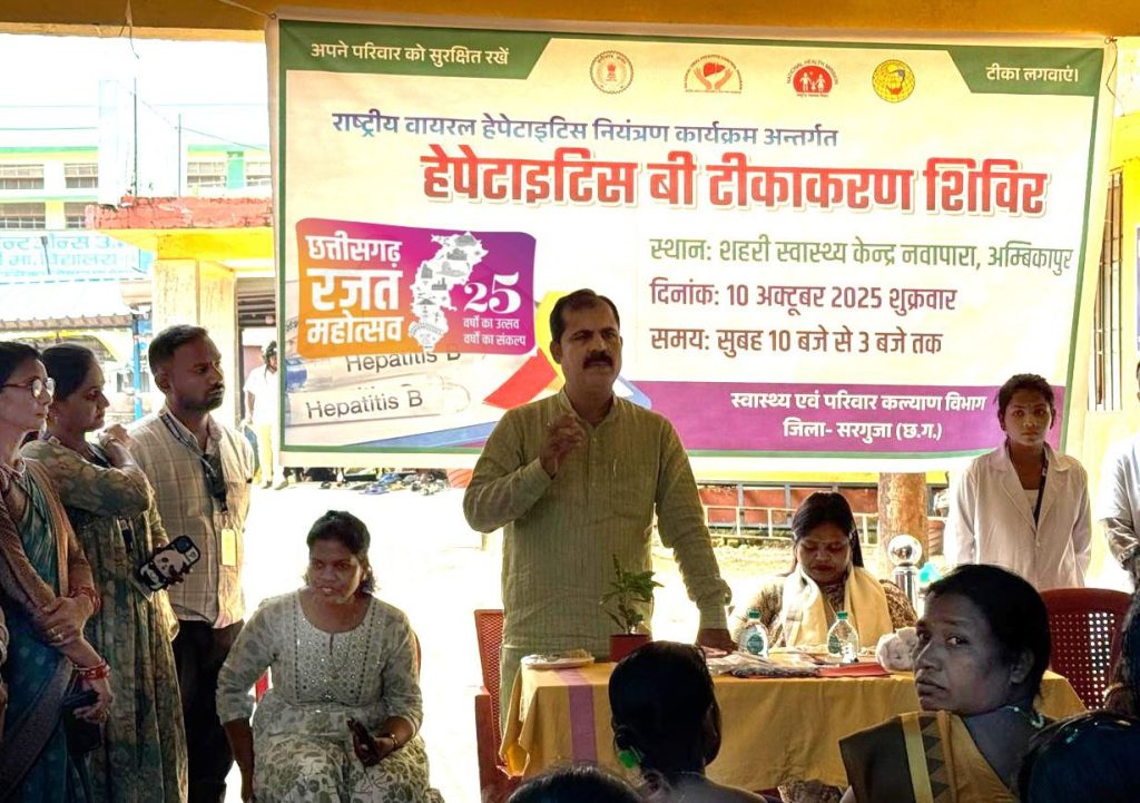 अम्बिकापुर महापौर श्रीमती मंजूषा भगत ने कहा कि छत्तीसगढ़ राज्य के 25वें स्थापना दिवस के उपलक्ष्य में आयोजित यह रजत जयंती महोत्सव जनता के स्वास्थ्य एवं कल्याण के लिए समर्पित है। उन्होंने कहा कि स्वास्थ्य विभाग द्वारा आयोजित यह विशेष शिविर न केवल हेपेटाइटिस की रोकथाम में सहायक होगा, बल्कि आम जनता को “जाँच, इलाज और रोकथाम” के महत्व से भी परिचित कराएगा। उन्होंने नागरिकों से अपील की कि वे अपने निकटतम आंगनबाड़ी सहायिका, मितानिन दीदी या एएनएम से संपर्क कर निःशुल्क टीकाकरण कराएं और अपने परिवार को सुरक्षित रखें।