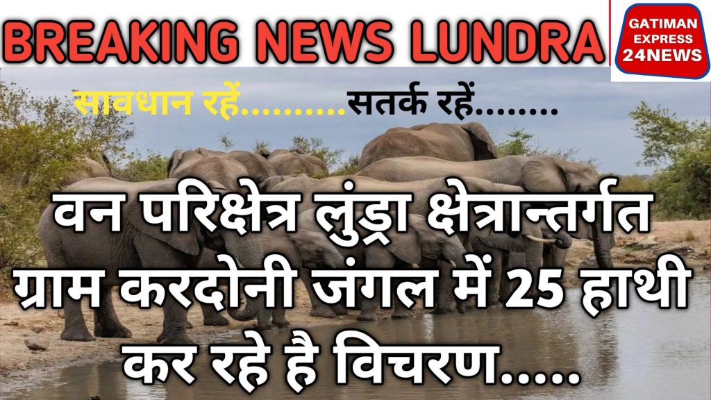 वन विभाग से मिली जानकारी के अनुसार, शुक्रवार को सूरजपुर वन परिक्षेत्र से 25 हाथियों का दल लुंड्रा क्षेत्र में प्रवेश किया है। लुंड्रा के रेंजर नवोदिन वर्मा ने बताया कि हाथियों की मौजूदगी की सूचना मिलते ही ग्रामीणों को मुनादी के माध्यम से सतर्क किया जा रहा है तथा जंगल की ओर न जाने की हिदायत दी गई है। हाथी का मूवमेंट वाले क्षेत्रों से ग्रामीणों को खाली कराते हुवे सुरक्षित स्थल पर ग्रामीणों के आश्रय की बात रेंजर लुंड्रा ने कही ।