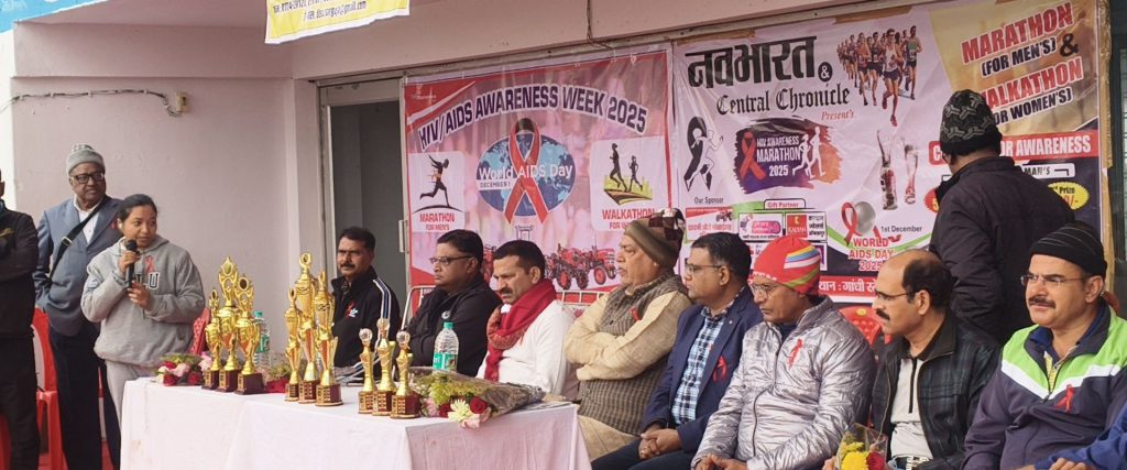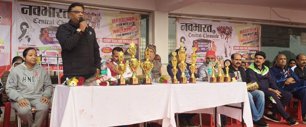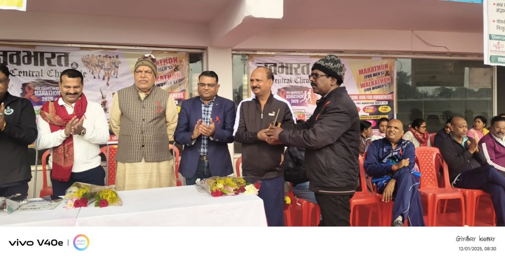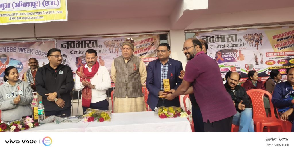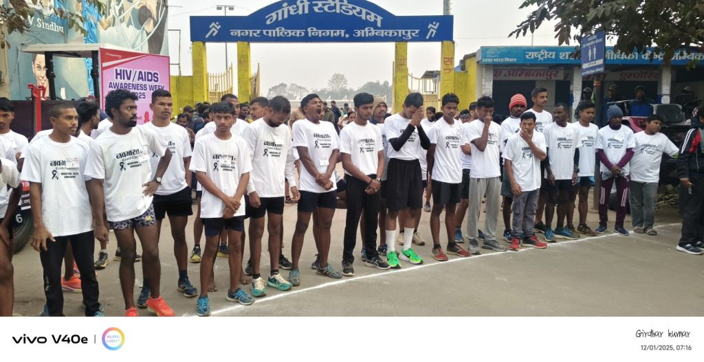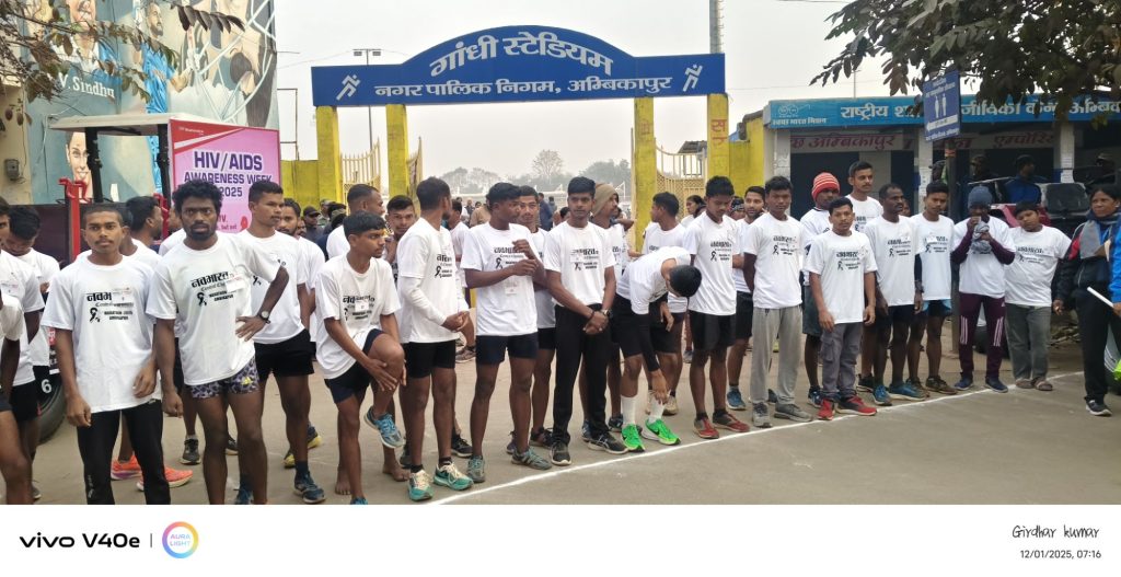 विश्व एड्स दिवस के अवसर पर सरगुजा जिला के गांधी स्टेडियम में नवभारत व द क्रॉनिकल के सौजन्य से एड्स जागरूकता के उद्देश्य से मैराथन दौड़ प्रतियोगिता व वॉकथन का आयोजन किया गया । जिसमें धावकों के जोश और जुनून का अदभुत नजारा देखने को मिला । कलेक्टर सरगुजा विलास भोस्कर एवं पुलिस अधीक्षक सरगुजा राजेश अग्रवाल द्वारा झंडी दिखाकर धावकों को रवाना किया ।