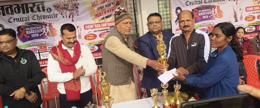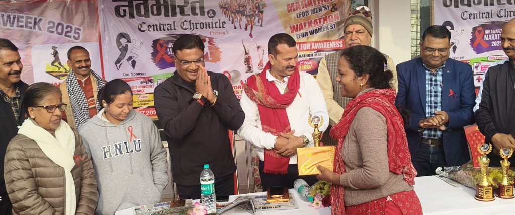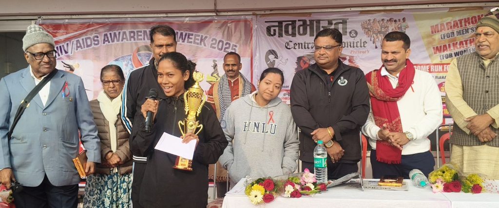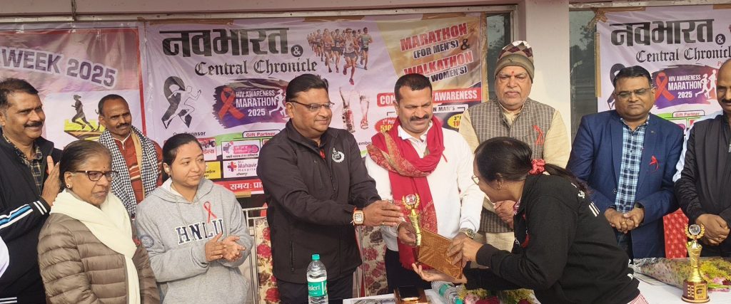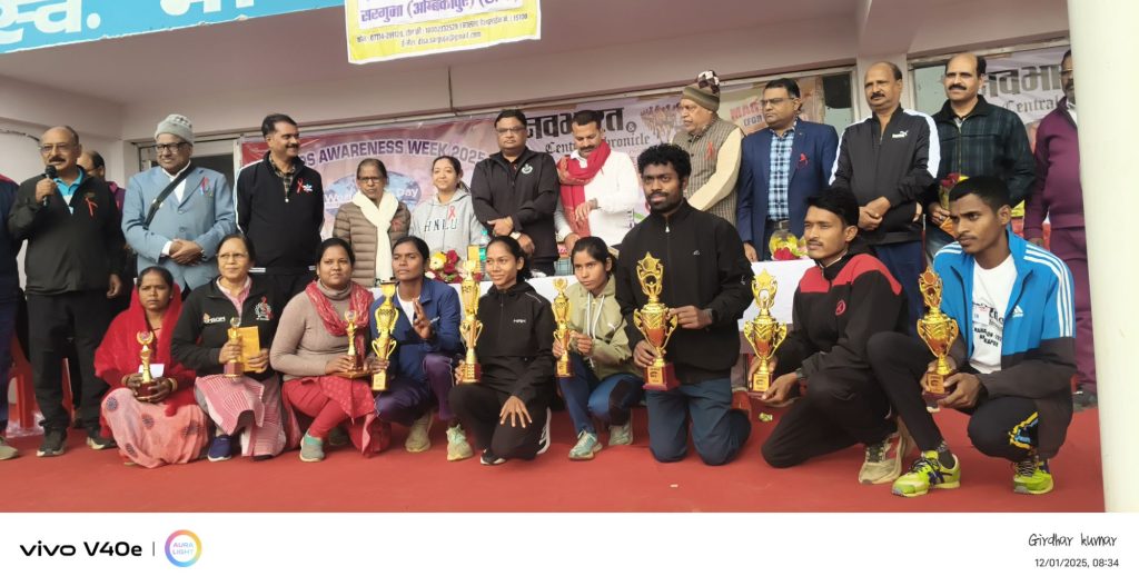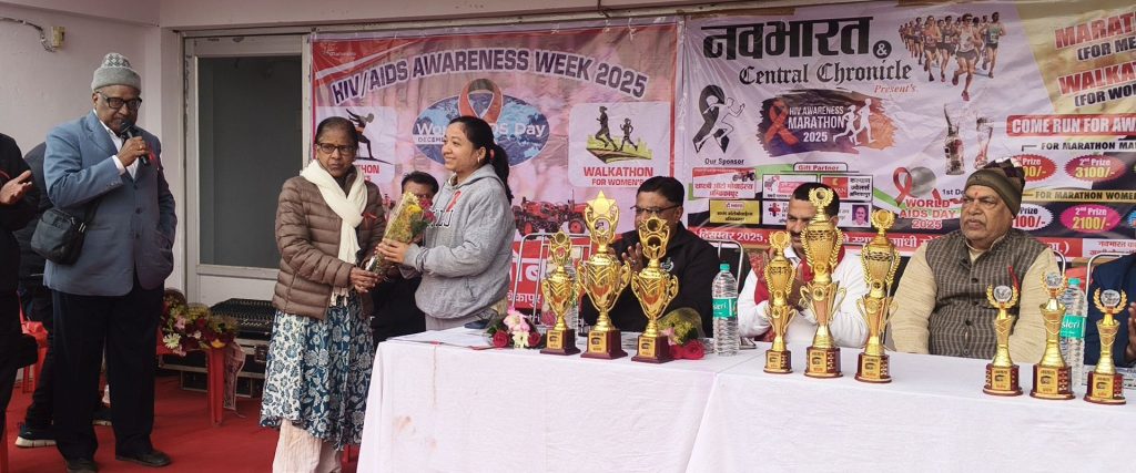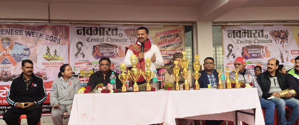 विश्व एड्स दिवस के अवसर पर सरगुजा जिला के गांधी स्टेडियम में नवभारत व द क्रॉनिकल के सौजन्य से एड्स जागरूकता के उद्देश्य से मैराथन दौड़ प्रतियोगिता व वॉकथन का आयोजन किया गया । जिसमें धावकों के जोश और जुनून का अदभुत नजारा देखने को मिला । कलेक्टर सरगुजा विलास भोस्कर एवं पुलिस अधीक्षक सरगुजा राजेश अग्रवाल द्वारा झंडी दिखाकर धावकों को रवाना किया ।