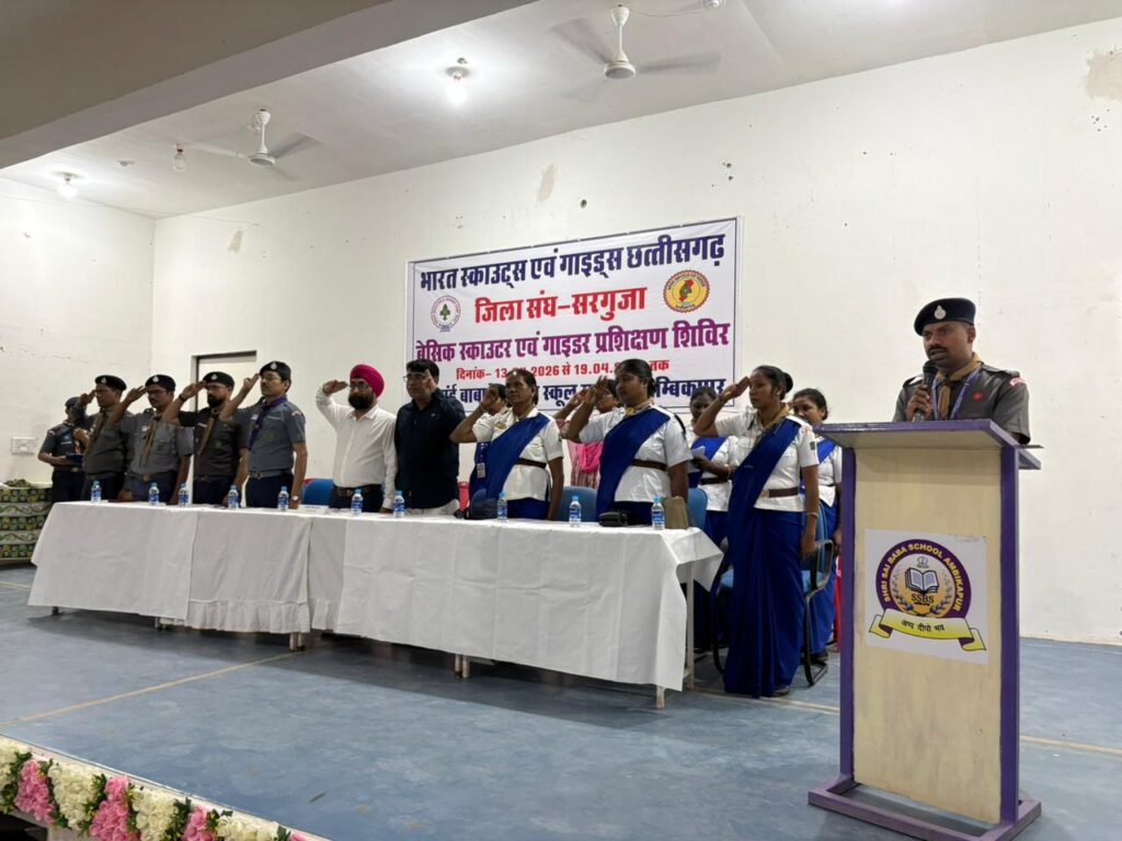 सरगुजा की पावन धरा पर सेवा, अनुशासन और राष्ट्रनिर्माण के उदात्त संकल्पों के साथ भारत स्काउट्स एवं गाइड्स, जिला संघ सरगुजा के तत्वावधान में बेसिक स्काउटर एवं गाइडर प्रशिक्षण शिविर का भव्य शुभारंभ आज श्री साईं बाबा डे बोर्डिंग स्कूल, सरगवा (अंबिकापुर) परिसर में उत्साह, गरिमा एवं अनुशासनपूर्ण वातावरण में संपन्न हुआ। 13 अप्रैल से 19 अप्रैल 2026 तक आयोजित होने वाला यह शिविर स्काउटिंग-गाइडिंग के सिद्धांतों को व्यवहार में उतारने की दिशा में एक सशक्त पहल है।
