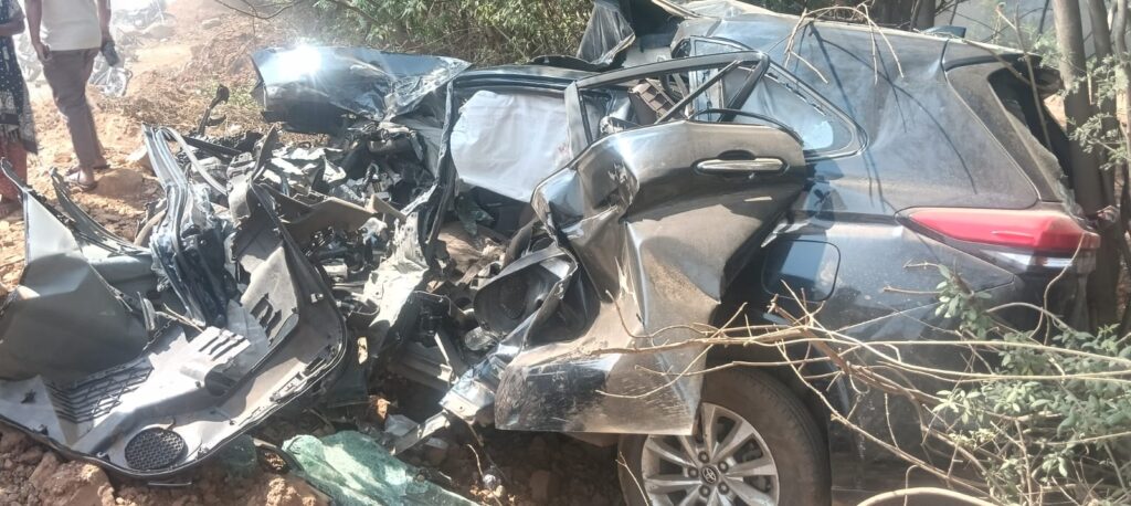 सड़क हादसे में इनोवा हाइक्रोस में सवार 2 यात्रियों में से एक की दुर्घटनास्थल पर हुई मौत