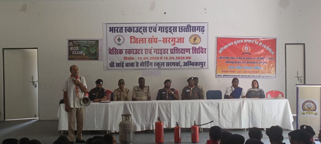 सरगुजा की पावन धरा पर सेवा, अनुशासन एवं राष्ट्रनिर्माण के आदर्शों को आत्मसात करते हुए भारत स्काउट्स एवं गाइड्स, जिला संघ सरगुजा के तत्वावधान में श्री साईं बाबा डे बोर्डिंग स्कूल, सरगवा (अंबिकापुर) परिसर में आयोजित बेसिक स्काउटर एवं गाइडर प्रशिक्षण शिविर के तृतीय दिवस का आयोजन अत्यंत उत्साह, ऊर्जा एवं ज्ञानवर्धक गतिविधियों के साथ संपन्न हुआ।